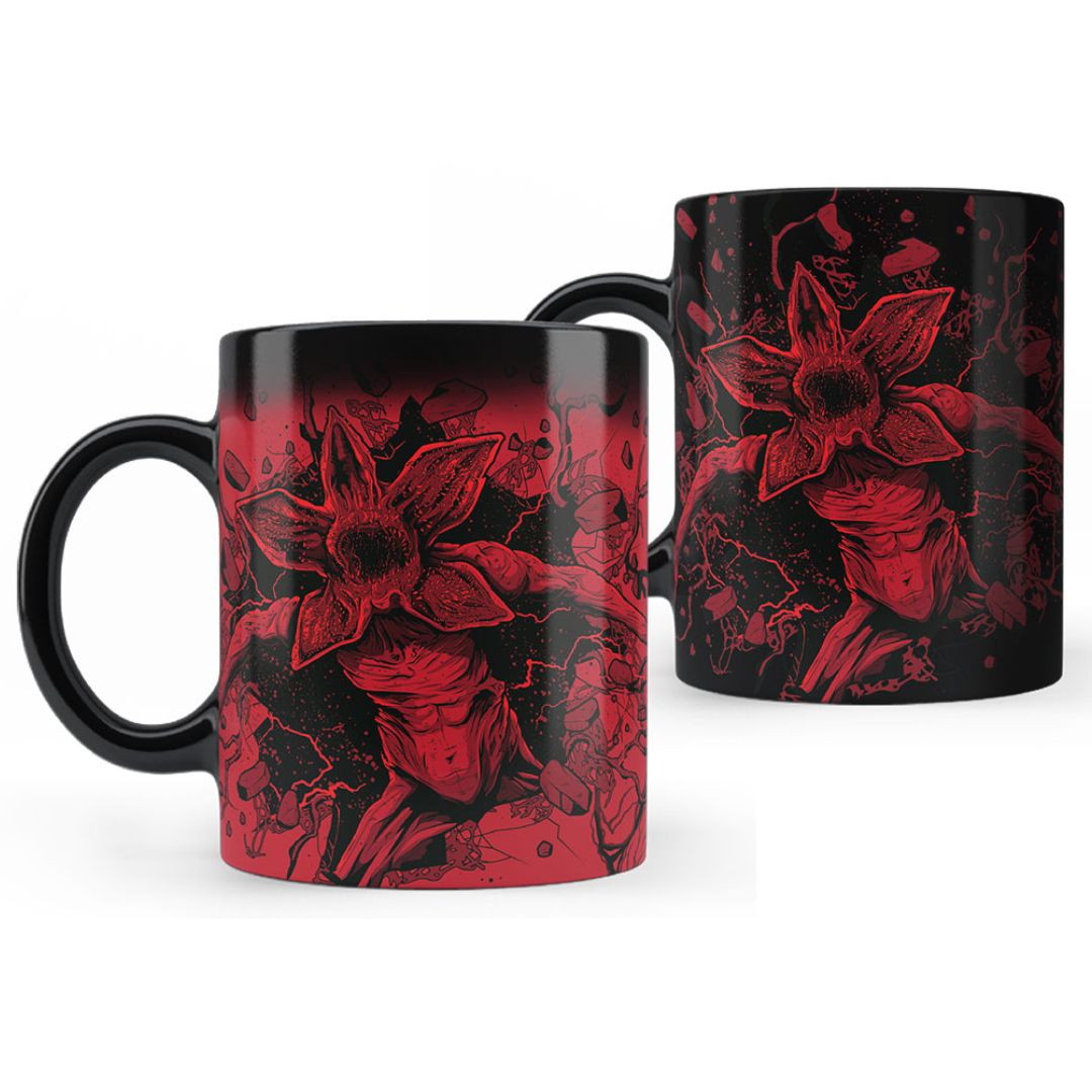 La mug di Stranger things è un prodotto must have, a freddo si presenta nera con il Demogorgone che emerge, ma non appena si versa la propria bevanda preferita, quest’ultimo si circorda di dettagli ispirati al Sottosopra. Un effetto che renderà la pausa caffè ancora più speciale.